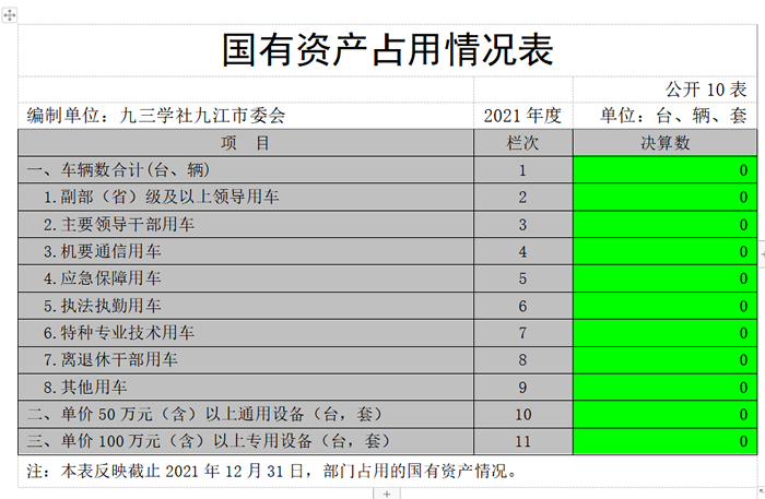 截止2021年12月31日,本部门国有资产占用情况见公开10表《国有资产占用情况表》。