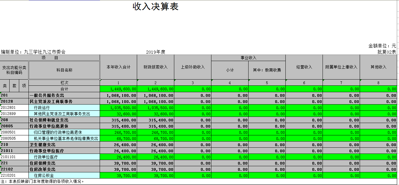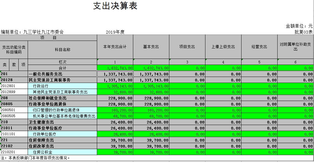 纳入本套部门决算汇编范围的单位共1个,为九三学社九江市委员会。市委会机关设一部一室,即组宣部和办公室。编制人数6人,其中:行政编制5人,工勤编制1人;在职人数5人,其中:行政编制4人,工勤编制1人;退休人员4人。