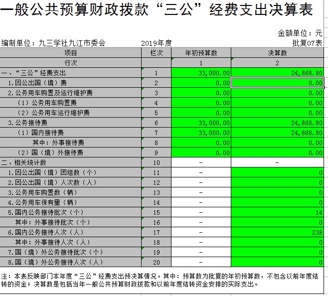 (九)“三公”经费:包括因公出国(境)费、公务用车购置及运行费和公务接待费。其中,因公出国(境)费指单位公务出国(境)的国际旅费、国外城市间交通费、住宿费、伙食费、培训费、公杂费等支出;公务用车购置及运行费指单位公务用车车辆购置支出(含车辆购置税)及燃料费、维修费、过路过桥费、保险费、安全奖励费用等支出;公务接待费指单位按规定开支的各类公务接待(含外宾接待)支出。