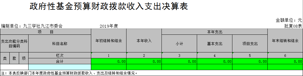 (八)上年结转和结余:填列2019年全部结转和结余的资金数,包括当年结转结余资金和历年滚存结转结余资金。