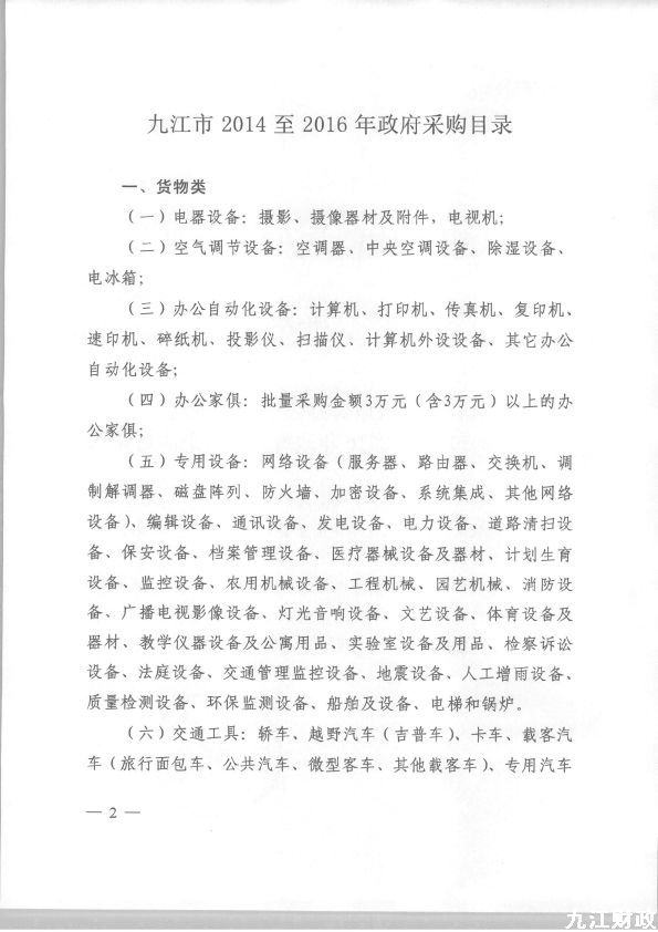[政府采购办]关于九江市2014至2016年政府采购目录的通知