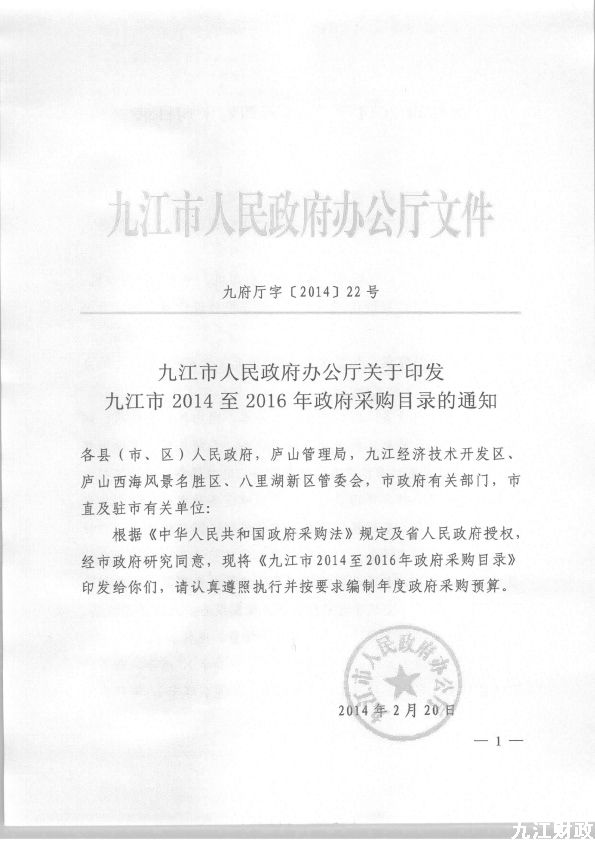 [政府采购办]关于九江市2014至2016年政府采购目录的通知
