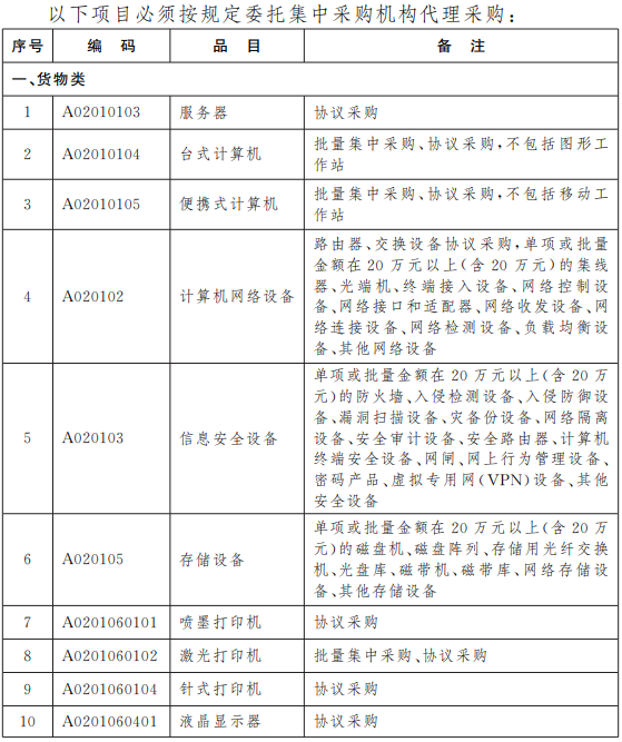 [采购办]2016-2017年度政府采购集中采购目录及限额标准