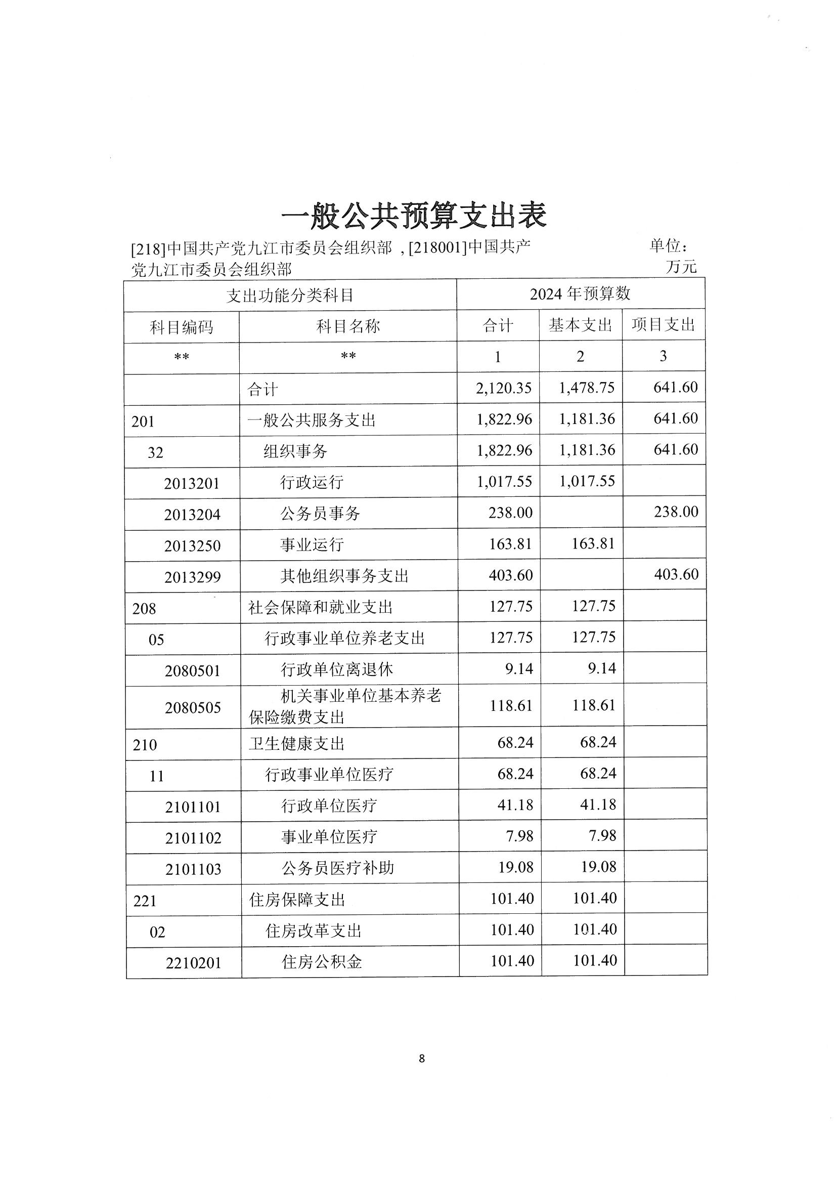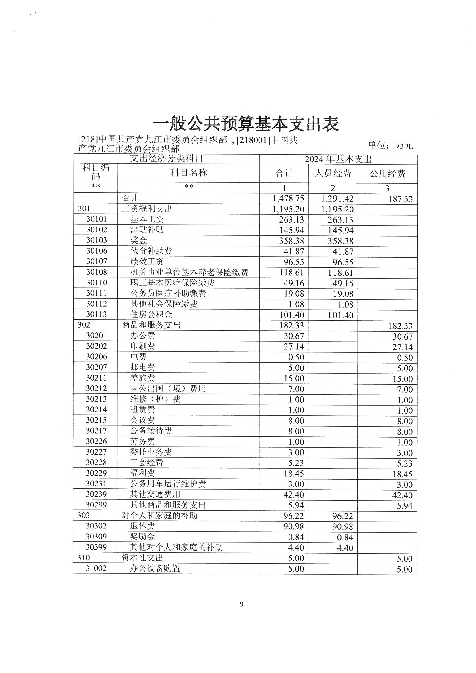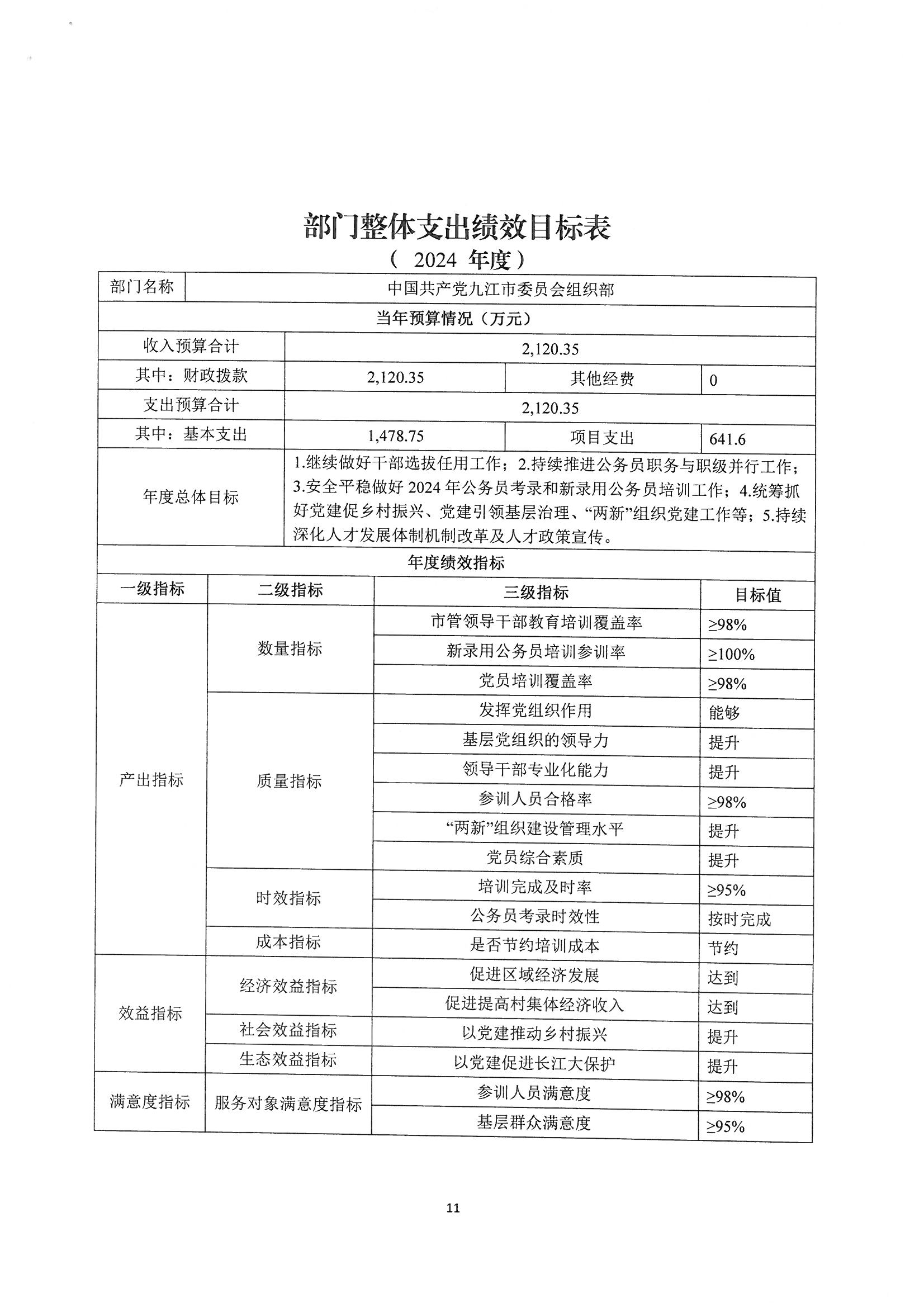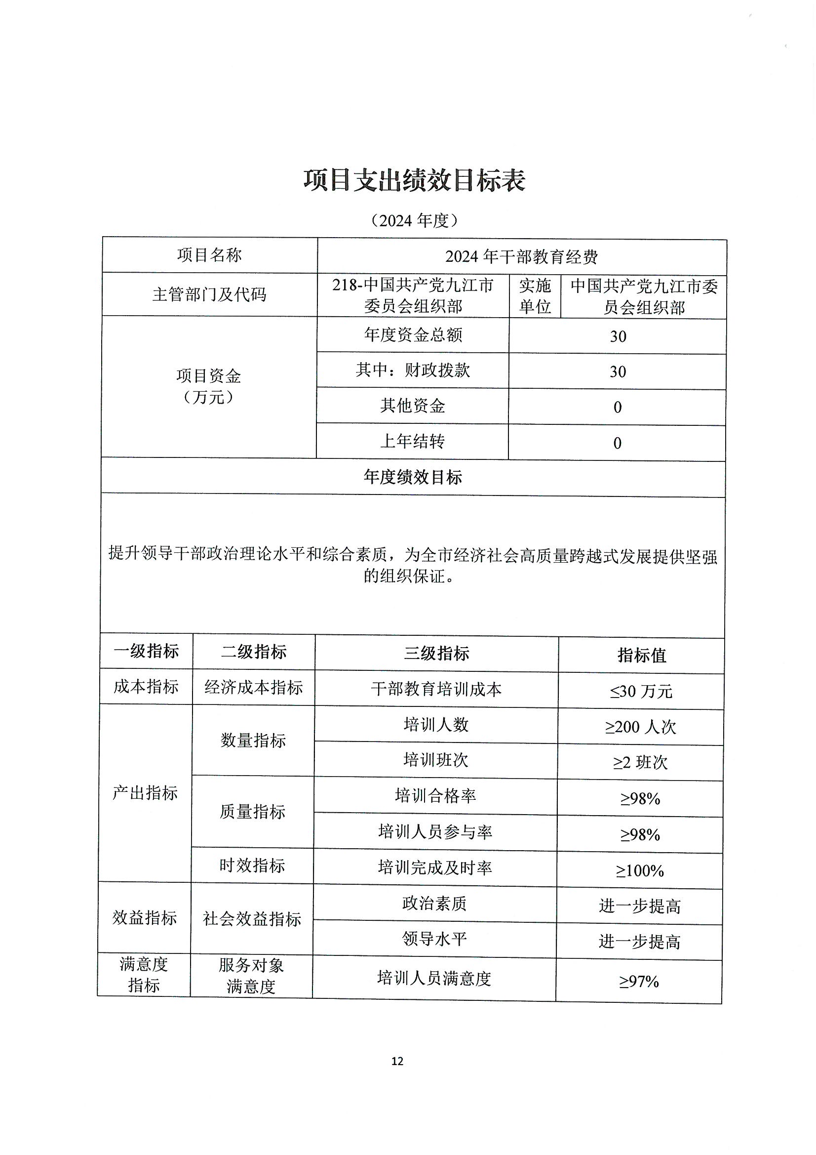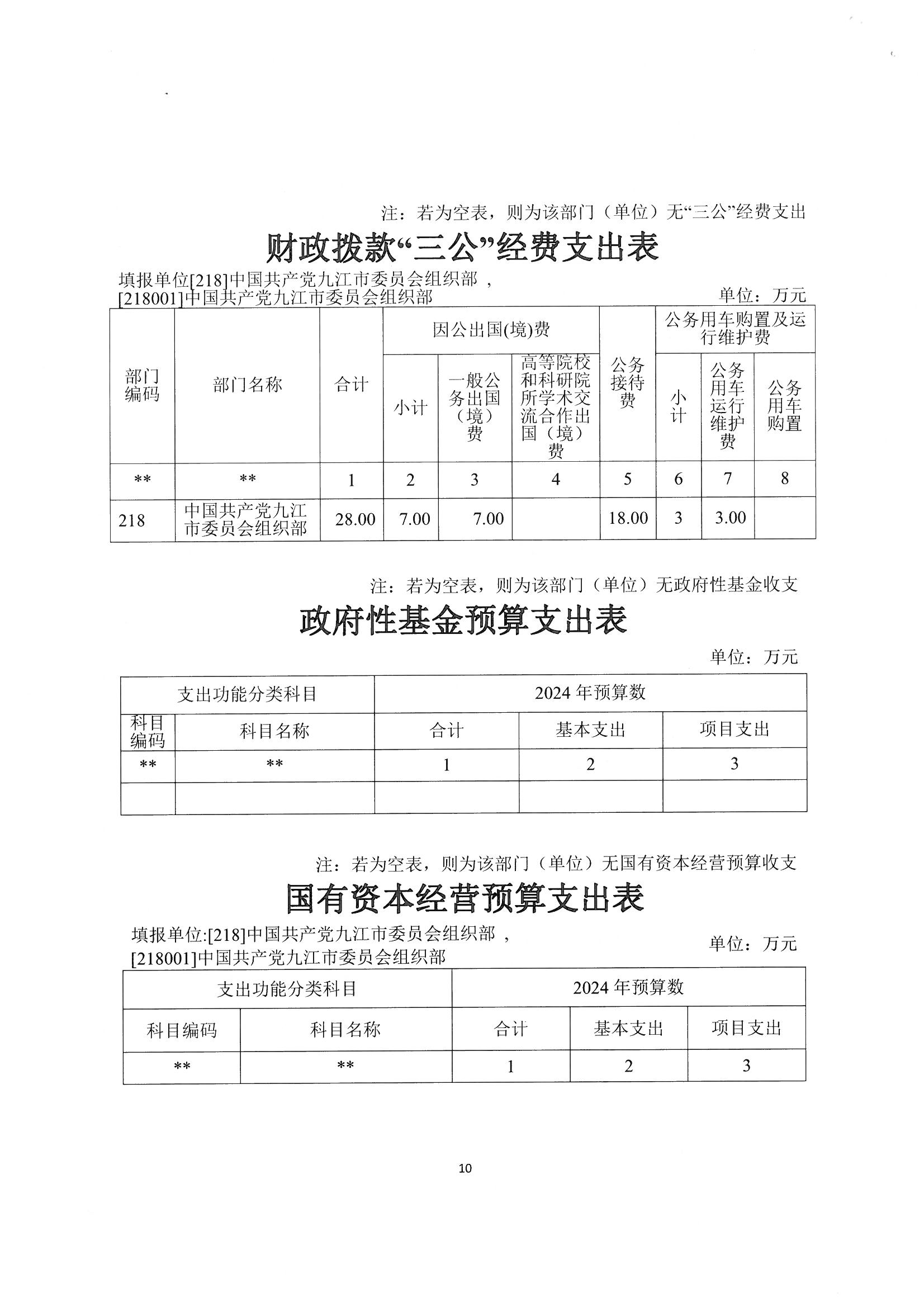 第二部分 九江市委组织部2024年部门预算表