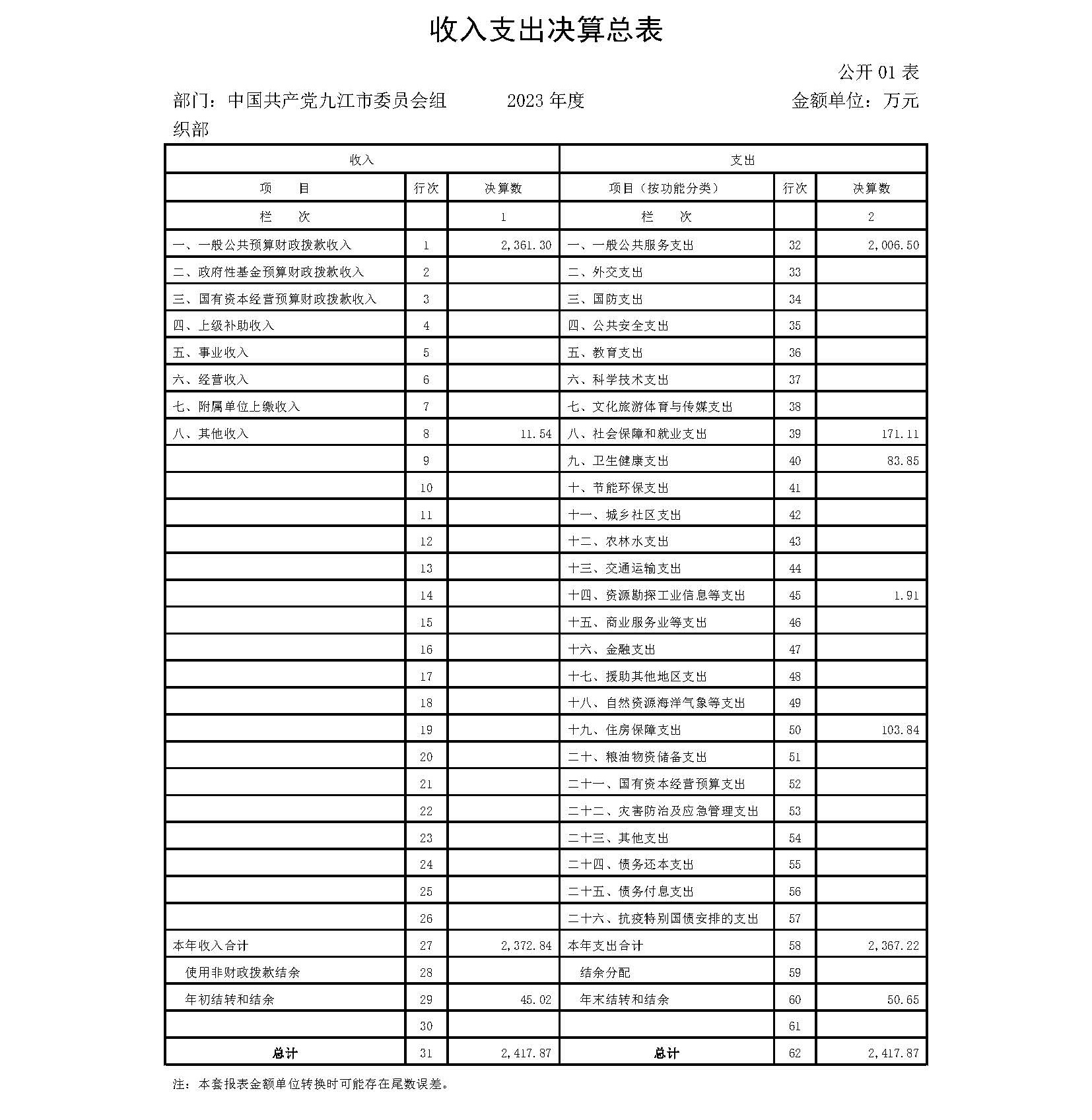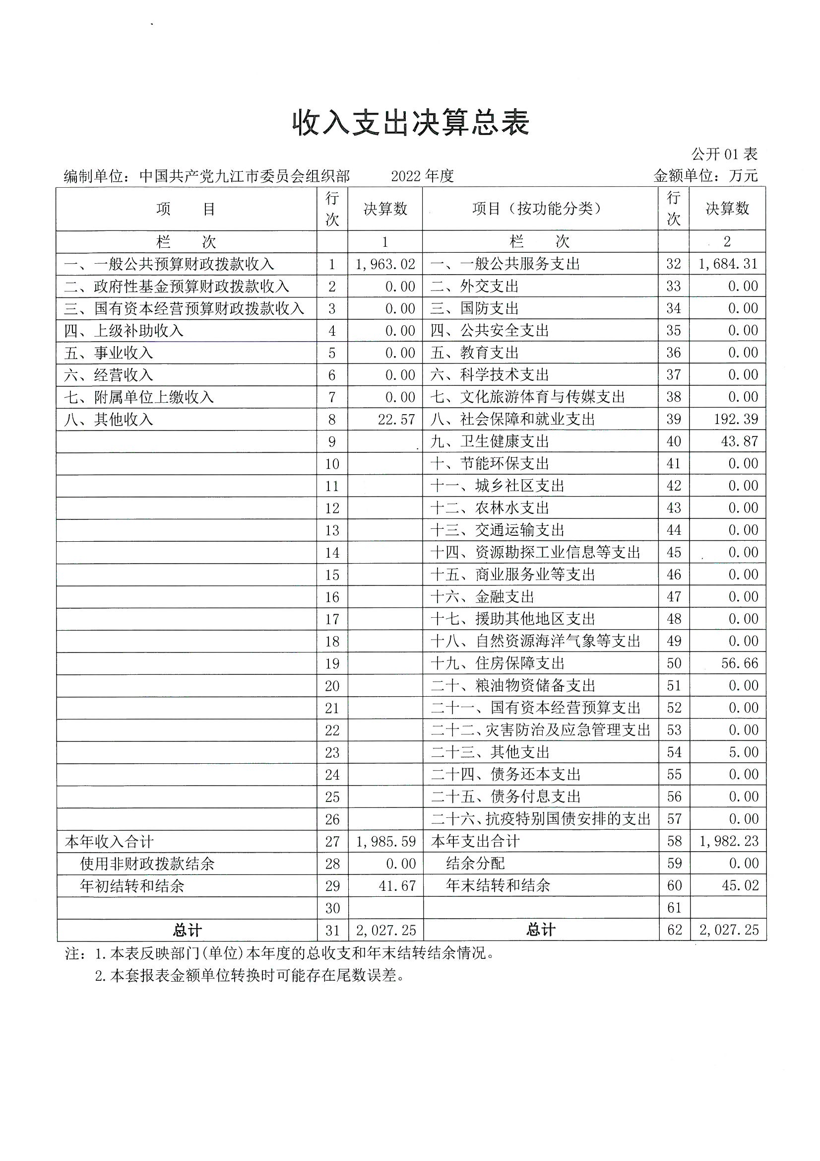 中国共产党九江市委员会组织部2023年度部门决算