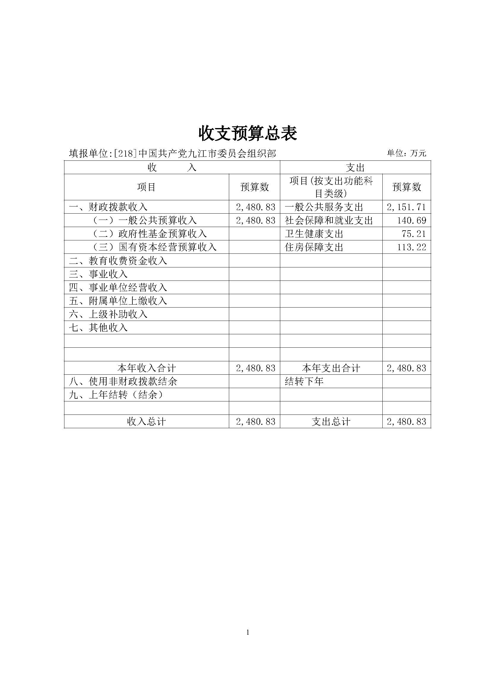 九江市委组织部2024年部门预算