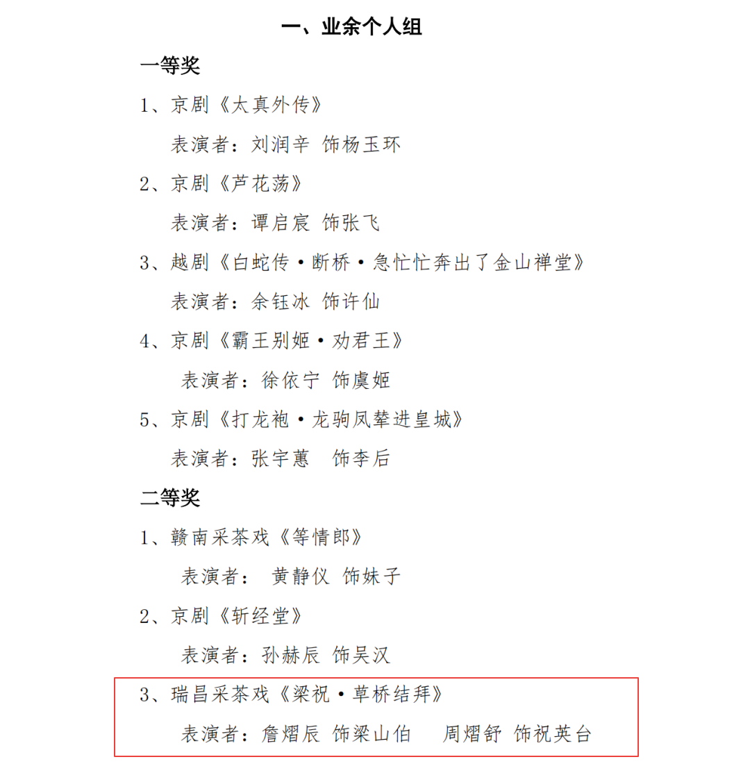 瑞昌采茶戏!两个省级“二等奖”