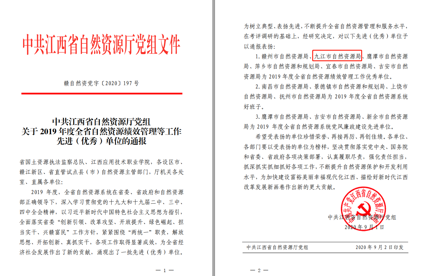 关于对庐山环南山公路建设项目办公室的嘉奖令