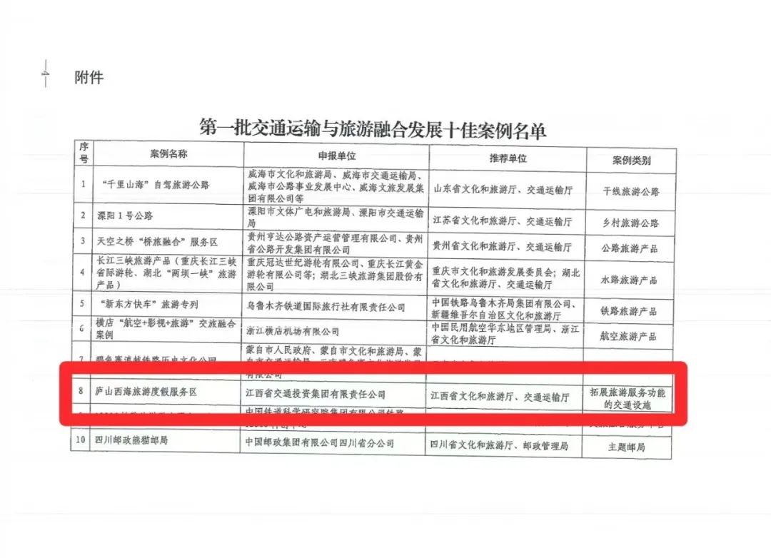 全国十佳!武宁县庐山西海旅游度假服务区成功入选