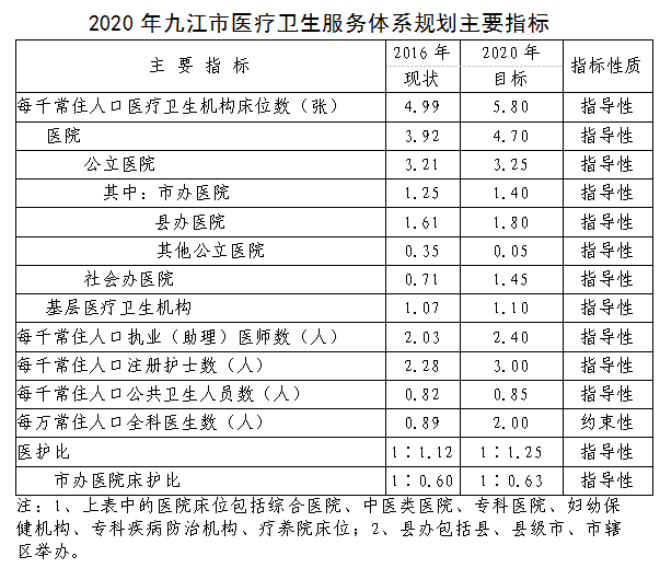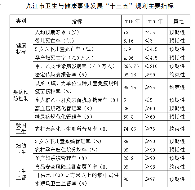 九江市卫生与健康事业发展第十三个五年规划纲要(2016-2020年)