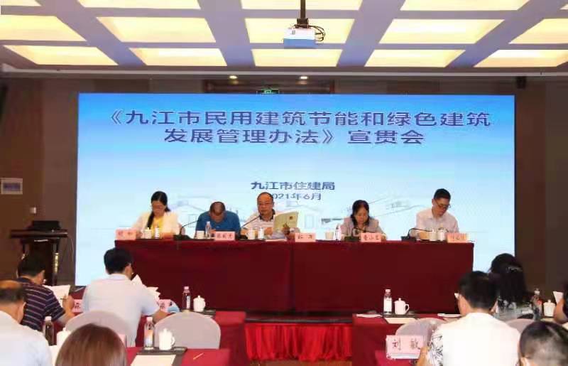 6月3日,《九江市民用建筑节能与绿色建筑发展管理办法》宣贯会暨业务培训会在共青城市格兰云天国际酒店3-5厅会议室隆重召开。市住建局党委委员、副局长郭军出席并讲话。市住建局总工程师张羽进主持会议。