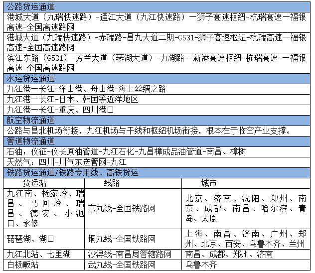 依托九江市工业产业基础和商贸业优势,不断提升干线运输与多式联运、区域分拨与城乡配送、仓储管理与流通加工、集中采购与分销、货运服务与信息交易、供应链金融等各环节服务功能。