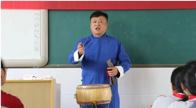 图12:非遗传承人向都昌中专学生展示都昌鼓书