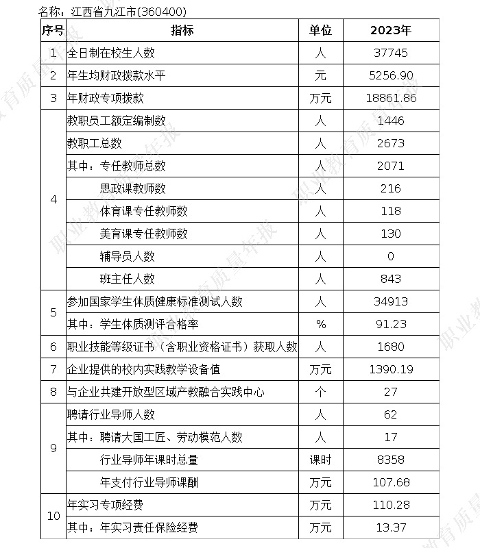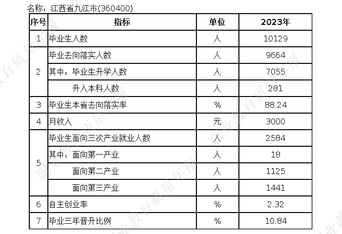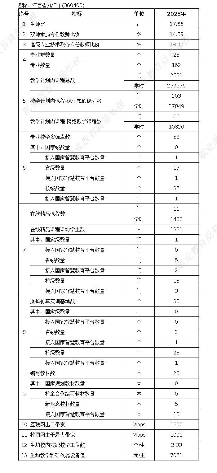 九江市2023年中等职业教育质量年度报告