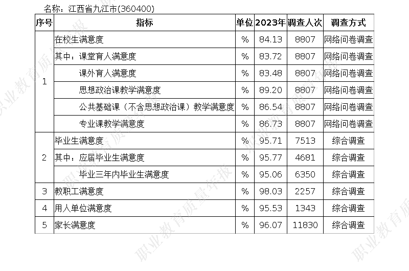 九江市中等职业教育质量