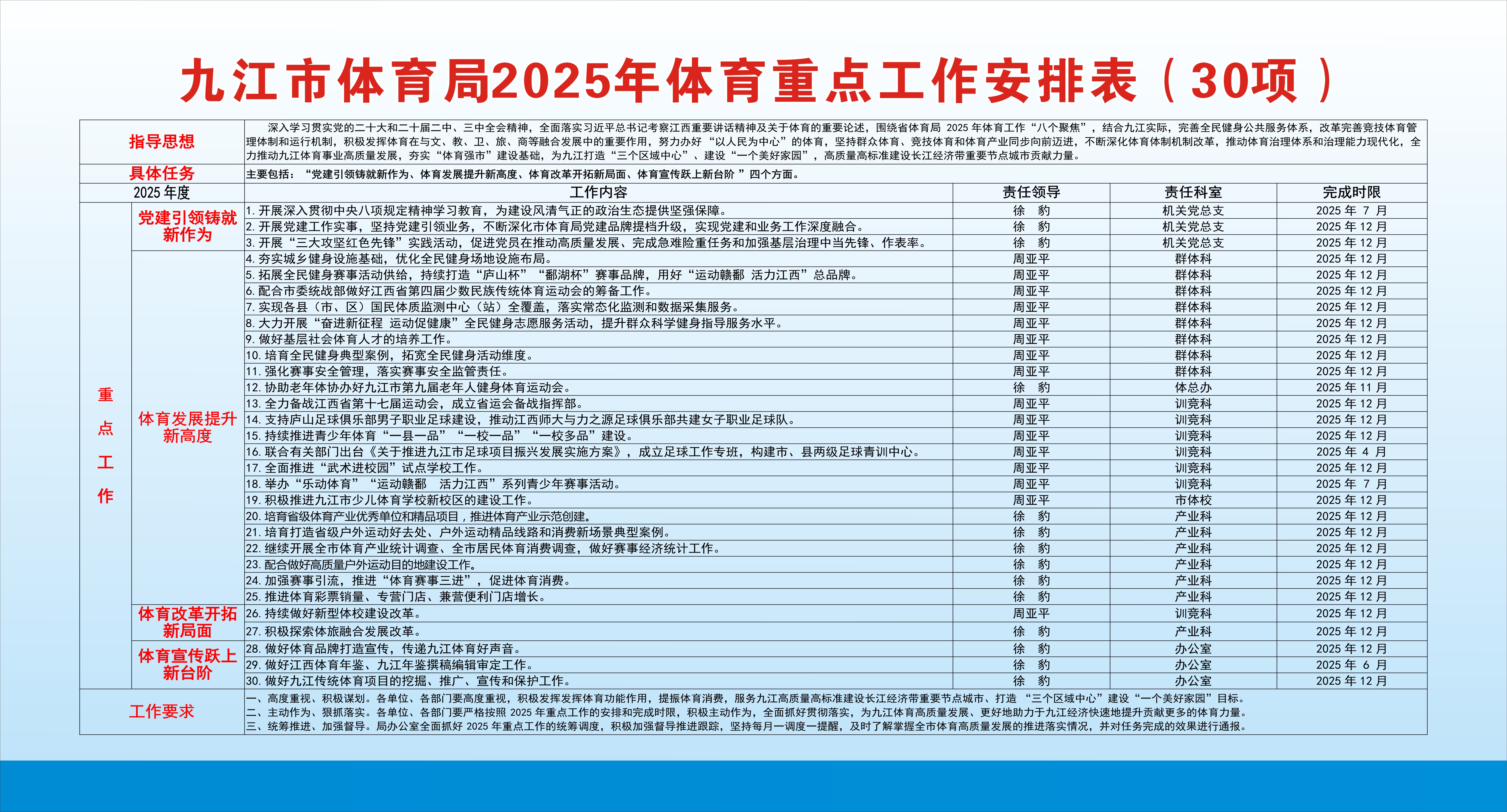 九江市体育局2025年体育重点工作