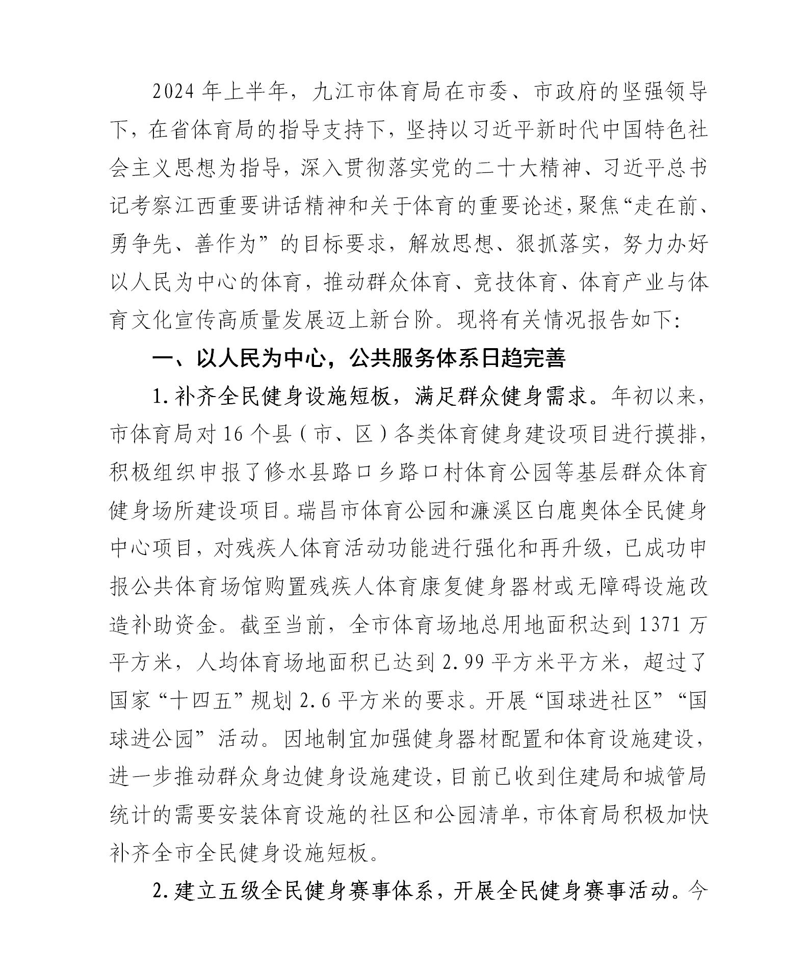 九江市体育局落实《市政府工作报告》的相关情况总结