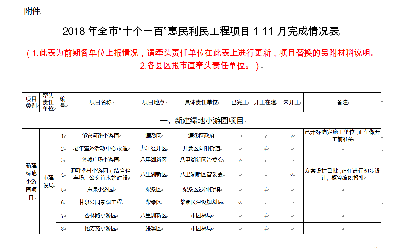 关于上报“十个一百”惠民利民实事完成情况的通知(九府督字〔2018〕58号)
