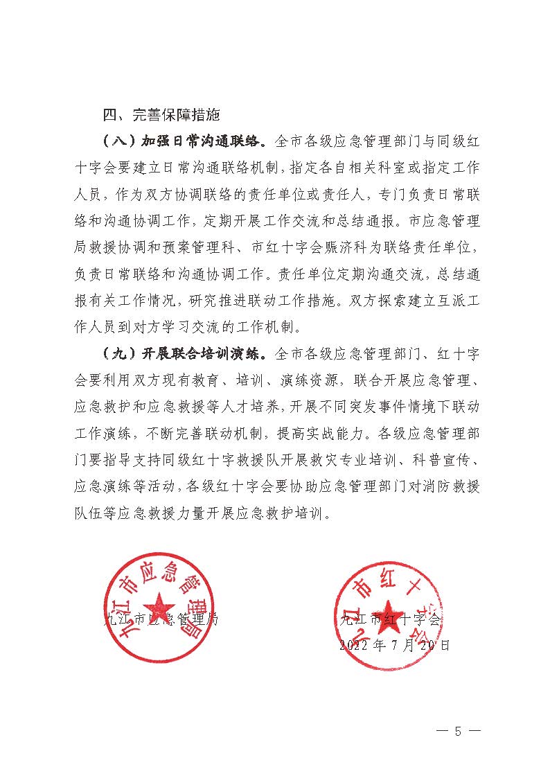 九应急字〔2022〕86 号 九江市应急管理局 九江市红十字会关于建立防灾减灾救灾联动工作机制的通知