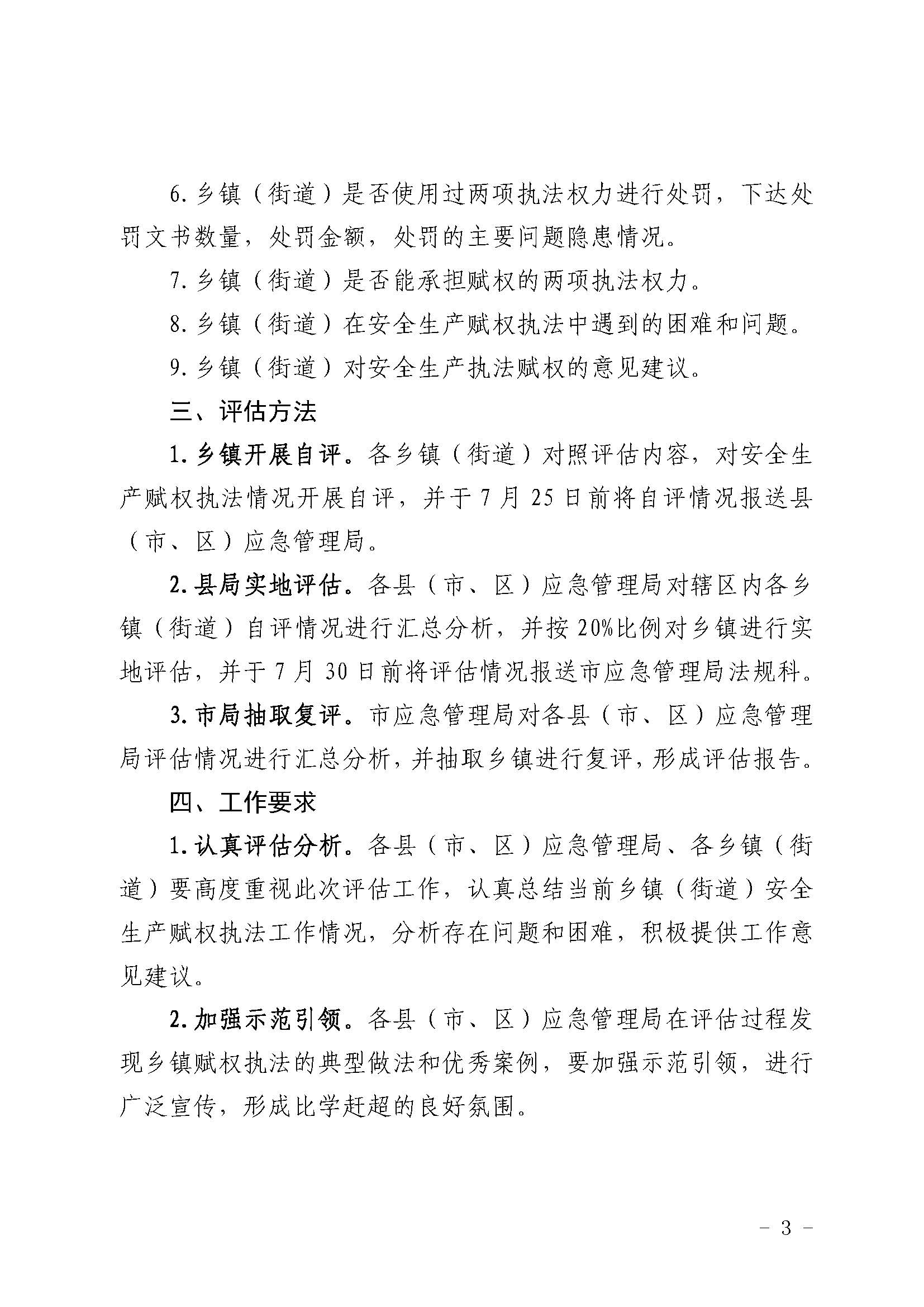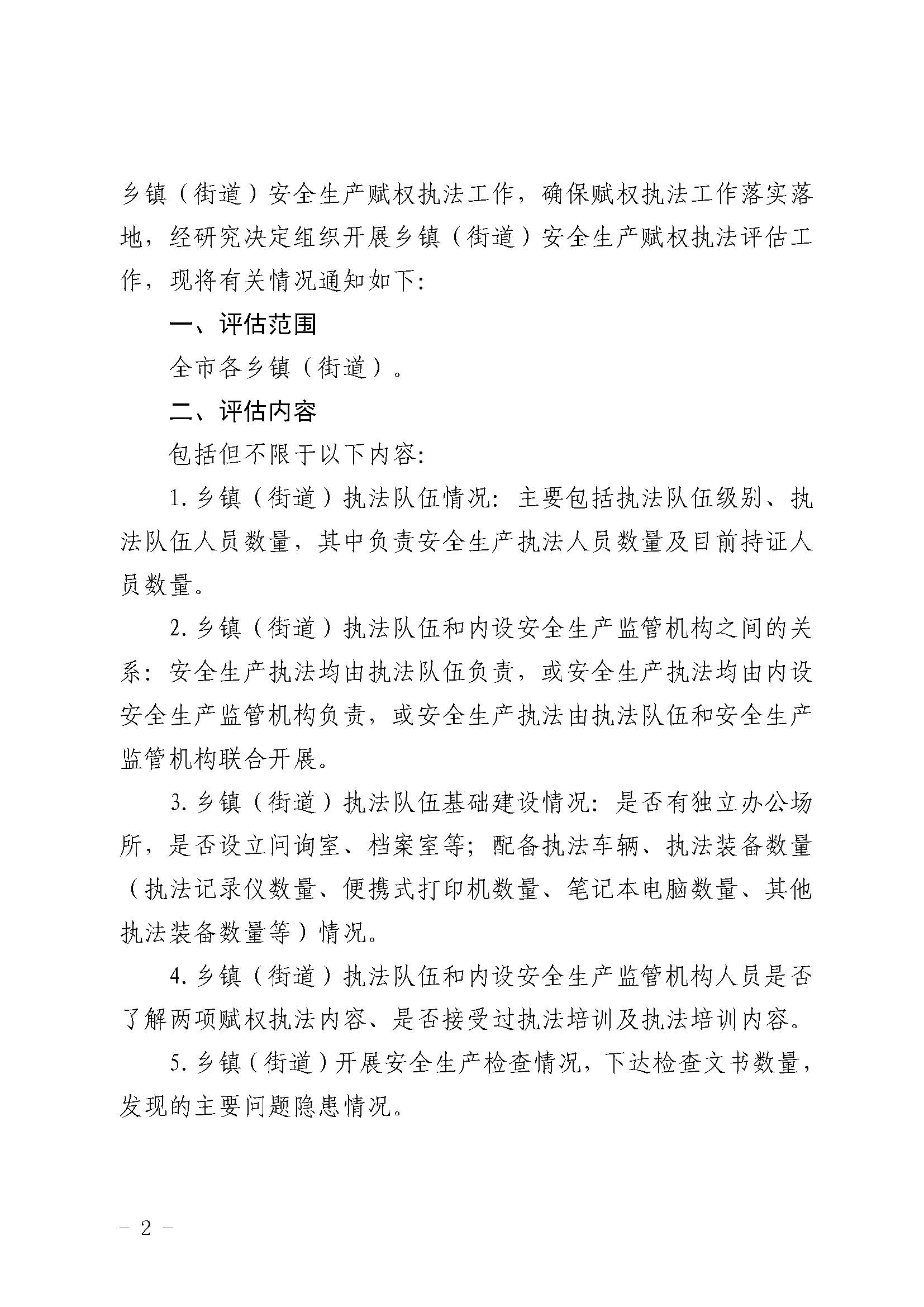 九应急字〔2022〕91号 关于开展乡镇(街道)安全生产赋权执法评估工作的通知