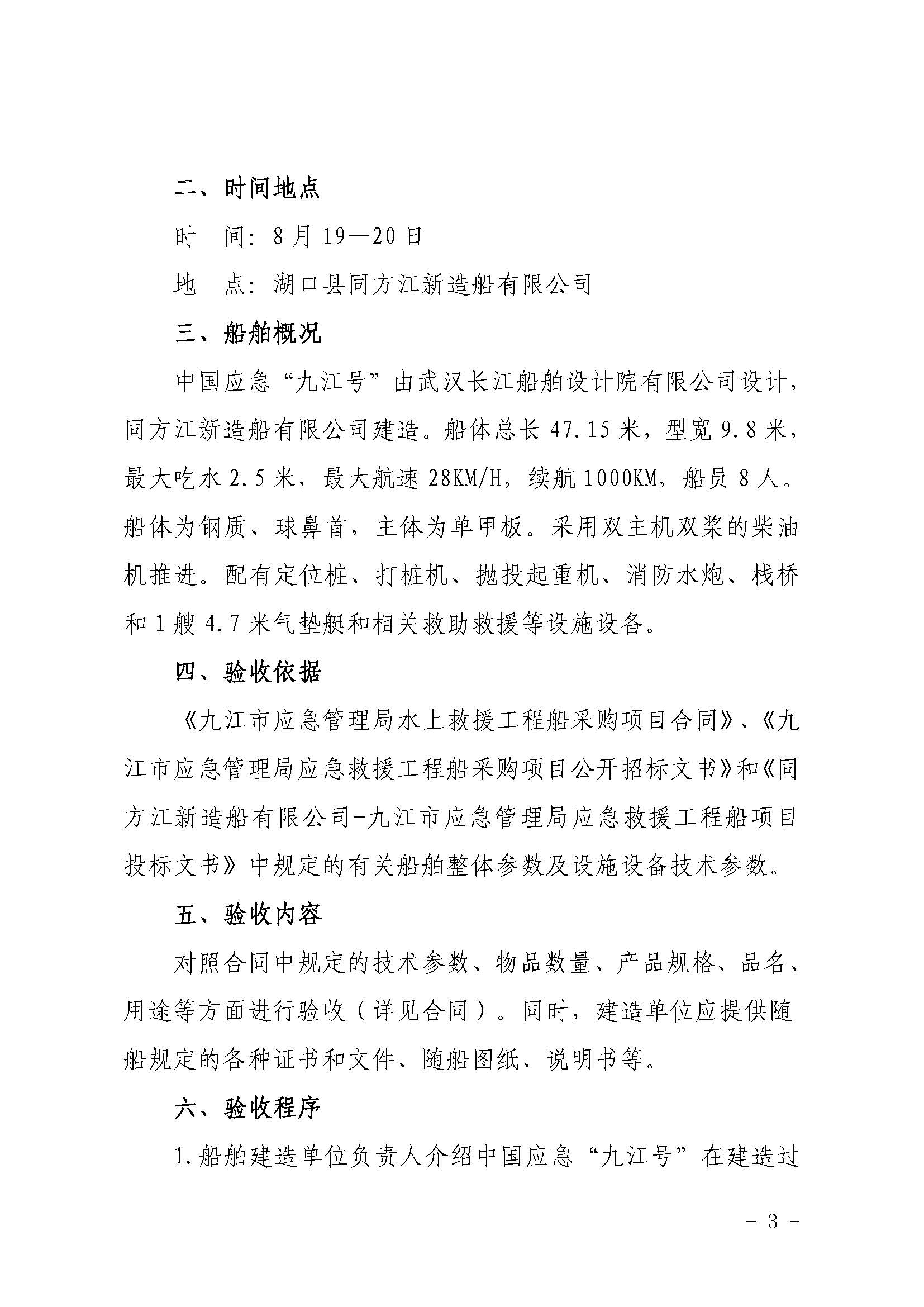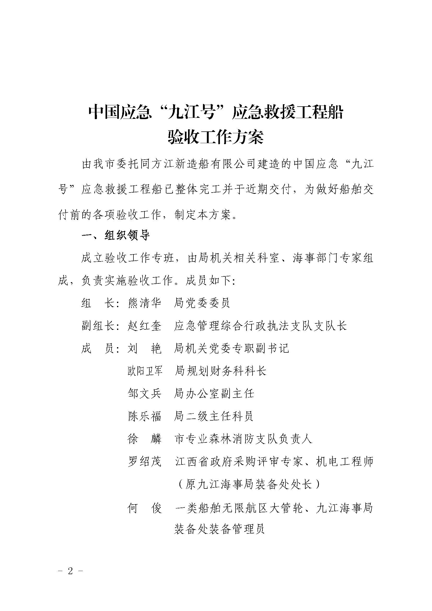 九应急字〔2022〕103 号 关于成立中国应急“九江号”应急救援工程船验收工作专班的通知