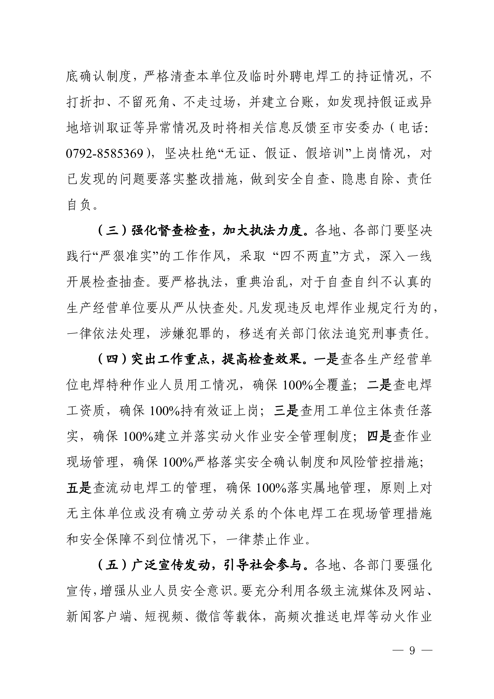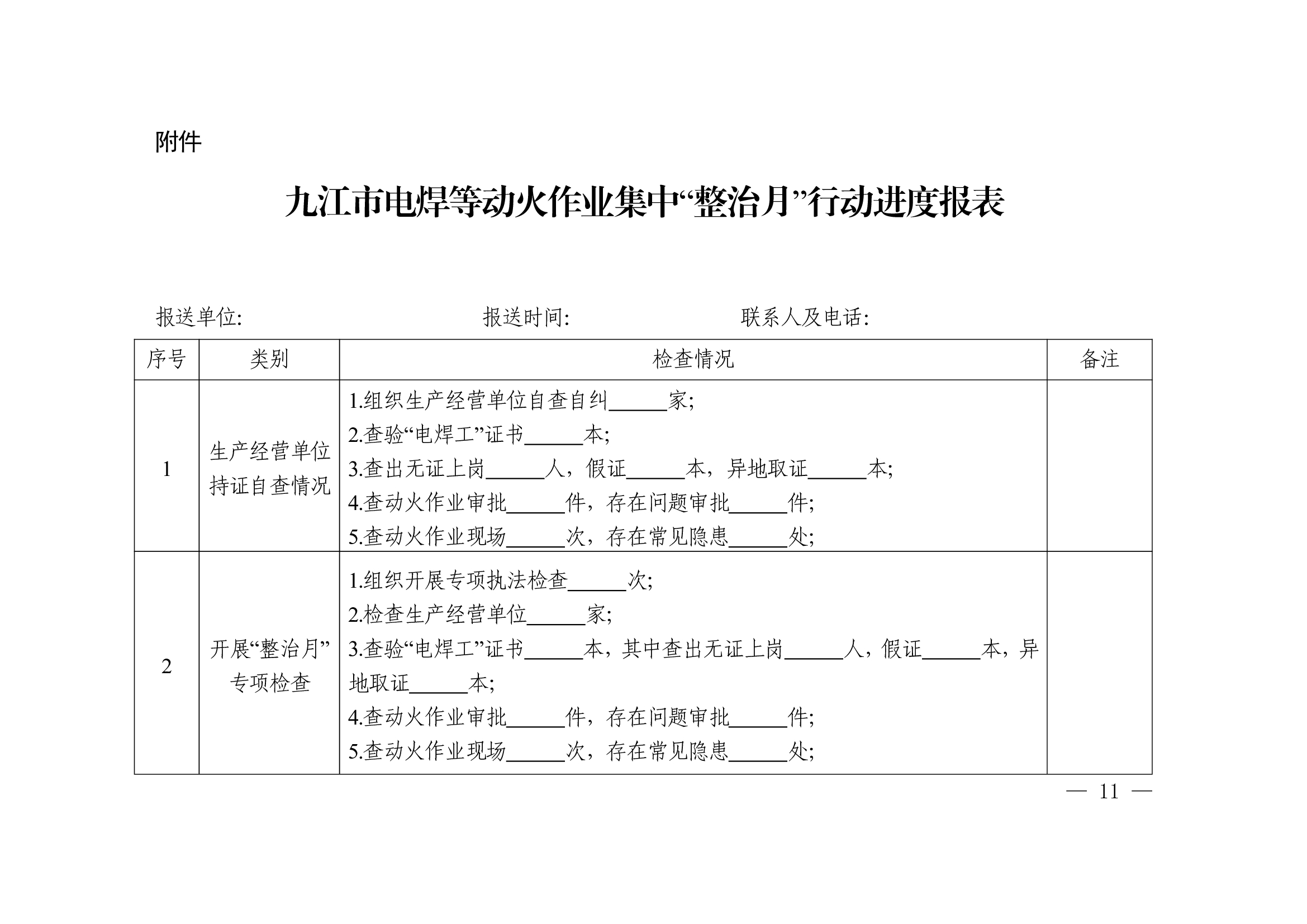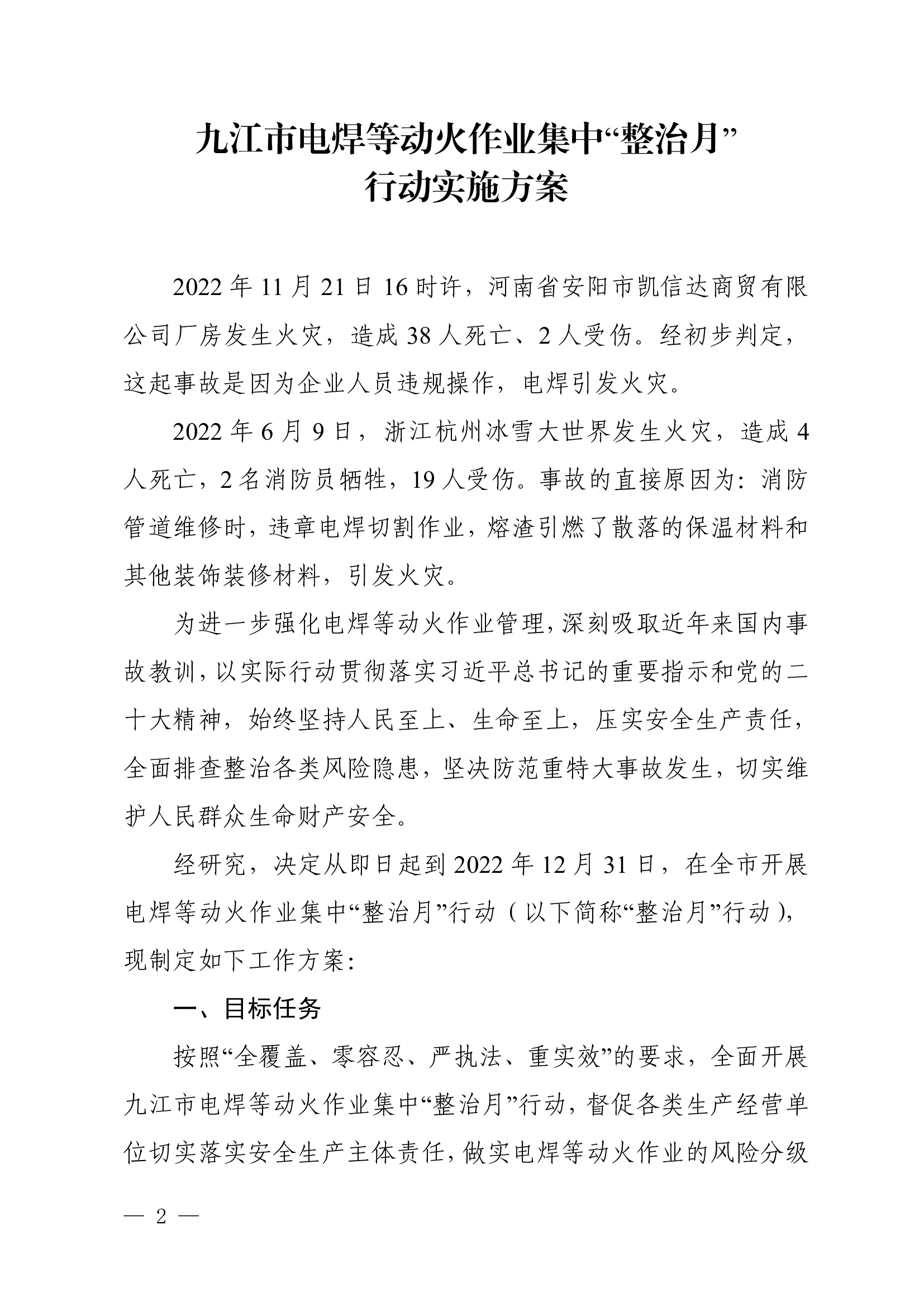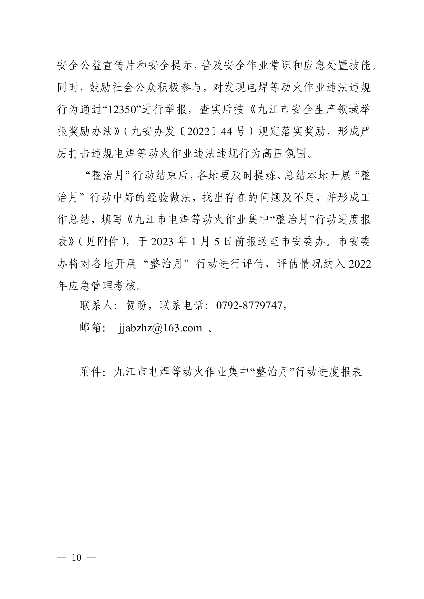 九安办发〔2022〕49号 关于印发《九江市电焊等动火作业安全“整治月”工作实施方案》的通知