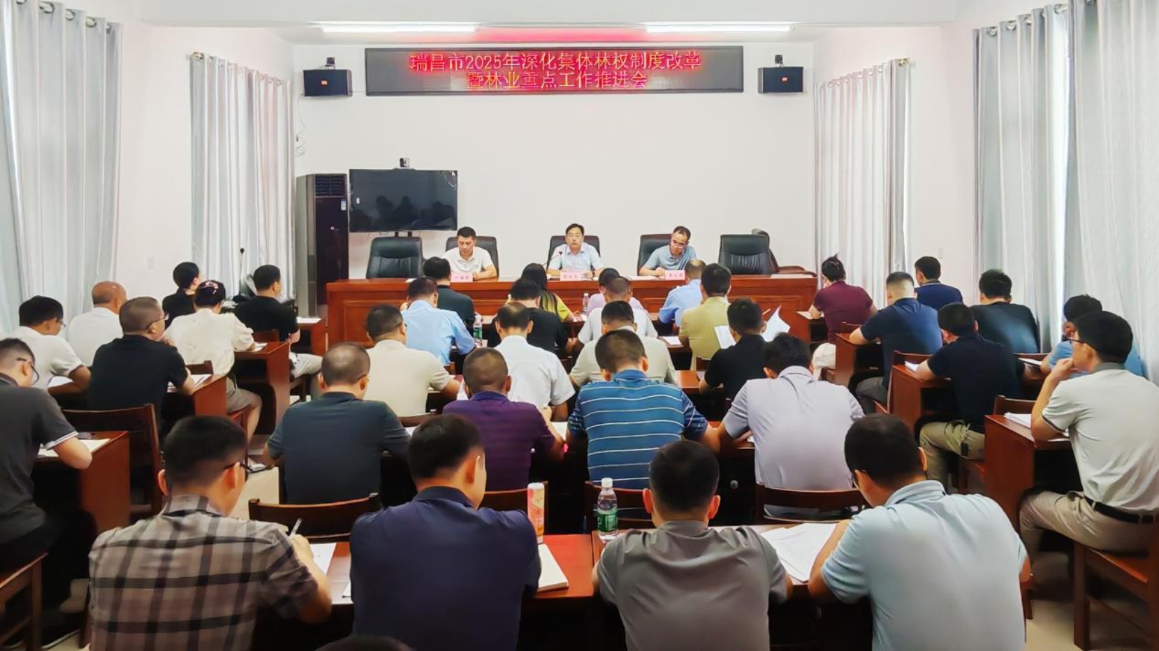 9月4日,瑞昌市召开深化集体林权制度改革暨重点工作推进会。会议传达学习了九江市林业重点工作上半年小结暨国有林场改革发展推进会议精神,系统回顾了瑞昌市1-8月深化林改及林业重点工作完成情况,就做好下一阶段各项工作进行安排部署。市直有关单位、各乡(镇、场、街道、风景名胜区)共50余人参会。