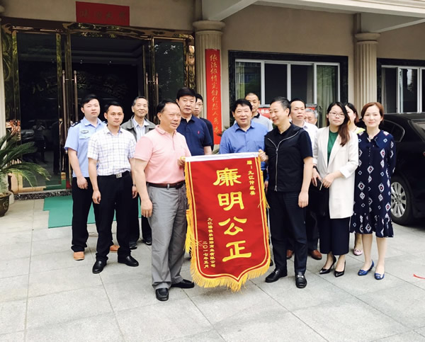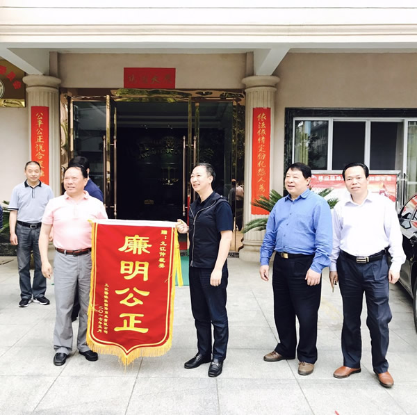 2017年5月16日,九江禧徕乐国际商业有限公司总裁杨承义将印有“廉明公正”的锦旗专程送到九江仲裁委。对九江仲裁委“特事特办、急事急办、高效廉明”工作作风以及对省重点招商引资项目亲商、护商、爱商,真心实意帮助民营企业解决生产经营中实际问题的行为表达了诚挚感谢。