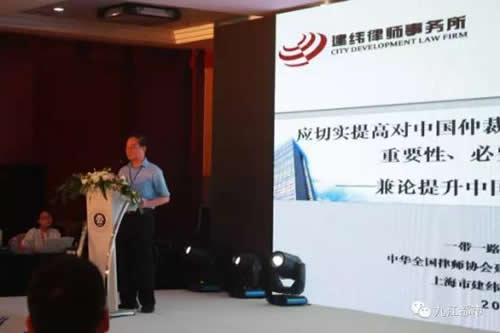 “一带一路(中国)仲裁院”副院长、中华全国律师协会建设工程与房地产专业委员会主任,上海建纬律师事务所主任朱树英讲解《应切实提高对中国仲裁在“一带一路”倡议中的重要性、必要性和操控性的认识--兼论提升中国仲裁能力和水平的紧迫性》。