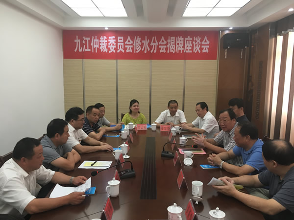 在座谈会上,九江仲裁委副主任周照华同志代表九江仲裁委员会宣读了《关于同意设立九江仲裁委员会修水分会的批复》。九江仲裁委员会修水分会副主任樊国安同志致欢迎词并介绍了修水分会筹建情况。修水分会樊斌杰同志代表仲裁员代表作了表态性发言,表示将公正、公平、全力以赴做好修水分会仲裁工作。