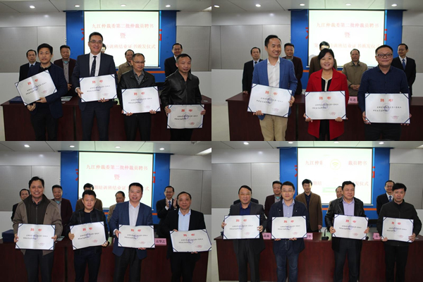 培训结束后,在杨焱林主任主持下举办了九江仲裁委第二批仲裁员聘书暨第二期培训班学员结业证书颁发仪式,九江仲裁委祝先进主任、副主任周照华、庐山仲裁国际培训基地主任杨焱林、副主任王辉明以及袁华之老师出席了颁发仪式并共同为九江仲裁委第一届第二批仲裁员颁发聘书,为第二期培训班学员颁发结业证书,颁证后全体学员拍照留念,气氛融洽。第二期“房地产与建设工程仲裁实务”专题培训班取得培训学员的一致好评,本次培训圆满结束。