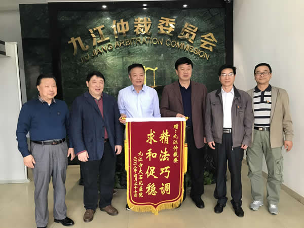 2018年4月27日上午,九江方大石化医院将一面写有“精法巧调,求和促稳”的锦旗和一封感谢信送到九江仲裁委,并对九江仲裁委公平高效解决纠纷表示感谢。