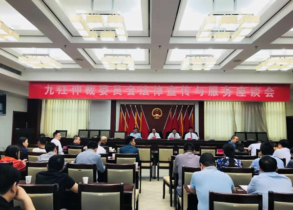 座谈会上,九江仲裁委员会房地产建设工程与PPP争议仲裁院副秘书长陈刚,九江仲裁委员会金融仲裁院秘书长徐兵和九江仲裁委员会交通与海事海事仲裁院秘书长赵紫烟就仲裁法和仲裁案件分别作了精彩授课。随后与会人员进行了互动交流,通过座谈讨论互动交流,大家加深了对《仲裁法》的理解,明确了仲裁在民商事纠纷中的独特优势。