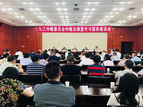 座谈会上,九江仲裁委员会房地产建设工程与PPP争议仲裁院执行院长王辉明,九江仲裁委员会金融仲裁院秘书长徐兵和九江仲裁委员会交通与海事海商仲裁院秘书长赵紫烟就仲裁法和仲裁案件分别作了精彩授课。随后与会人员进行了互动交流,通过座谈讨论互动交流,大家加深了对《仲裁法》的理解,明确了仲裁在民商事纠纷中的独特优势。