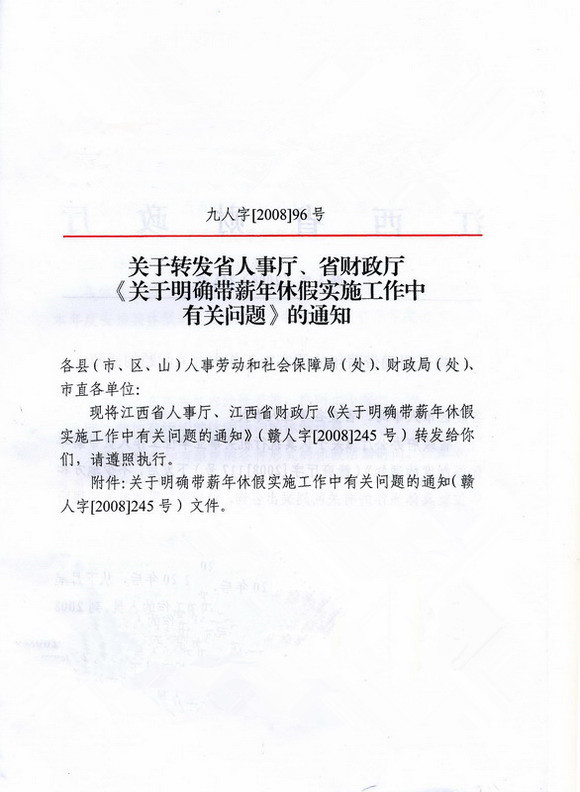 关于转发省人事厅、省财政厅《关于明确带薪年休假实施工作中有关问题》的通知