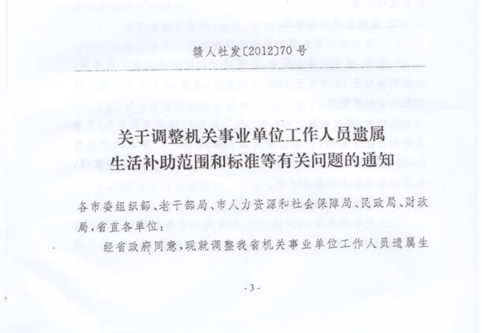 关于转发《关于调整机关事业单位工作人员遗属生活补助范围和标准等有问题的通知》的通知