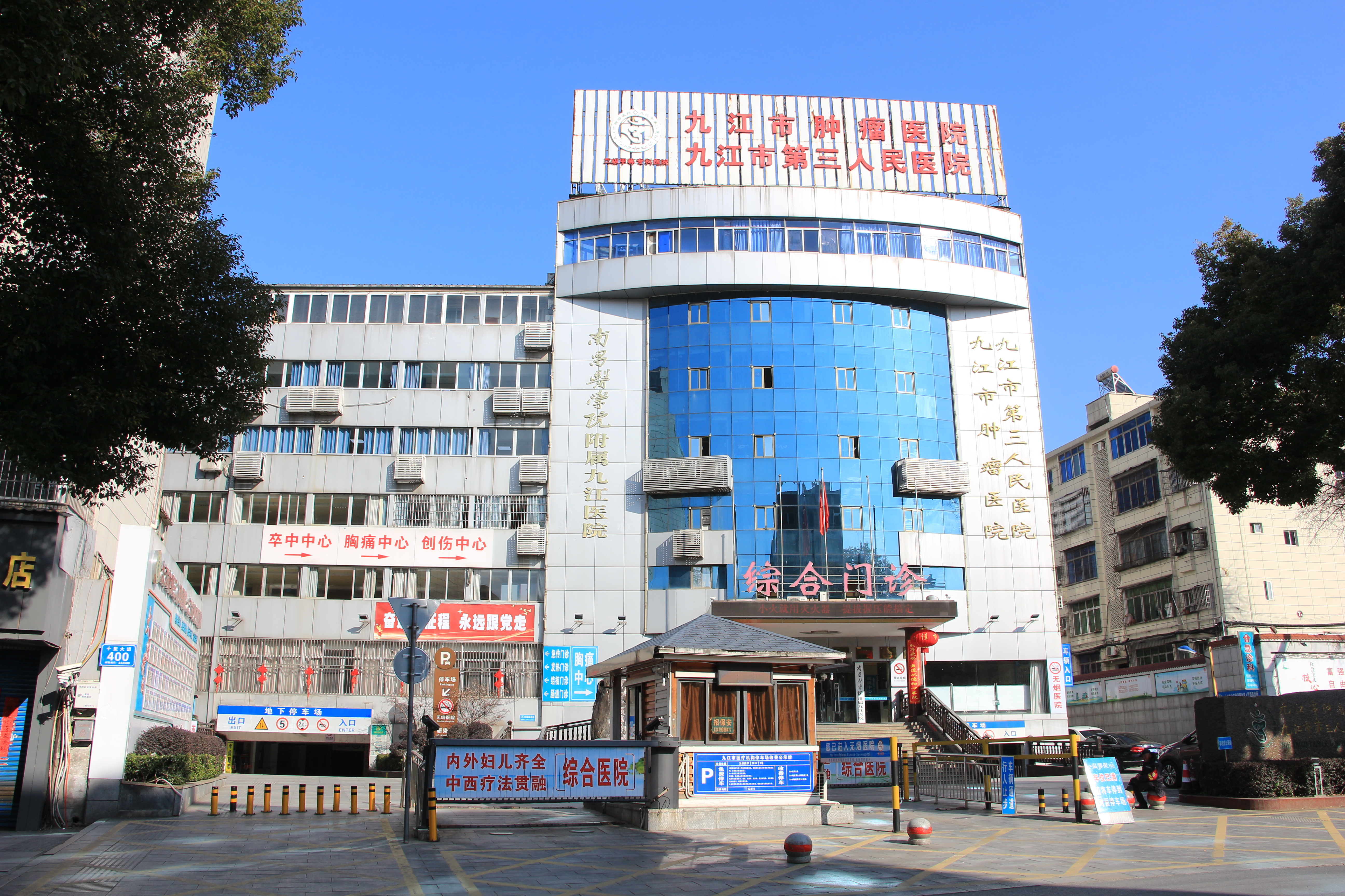 九江市第三人民医院,由原市三医院(创建于1972年)和原市传染病医院(创建于1954年)于1995年合并组建而成,1997年九江市肿瘤防治中心成立并挂靠医院,2002年经市政府批准挂牌成立九江市肿瘤医院,2003年非典后,政府在濂溪区威家镇投资新建突发公共卫生事件应急救治医院——九江市第三人民医院马祖山分院,2021年增名南昌医学院附属九江医院,2022年增挂九江市癌症中心,2023年挂牌武汉大学中南医院技术协作医院。经过几代人的不懈努力和励精图治,医院现已建设成为以肿瘤诊疗、肝病诊疗、结核病诊疗和急性传染病诊疗为专科特色,其他综合学科迅速发展的三级甲等医院。