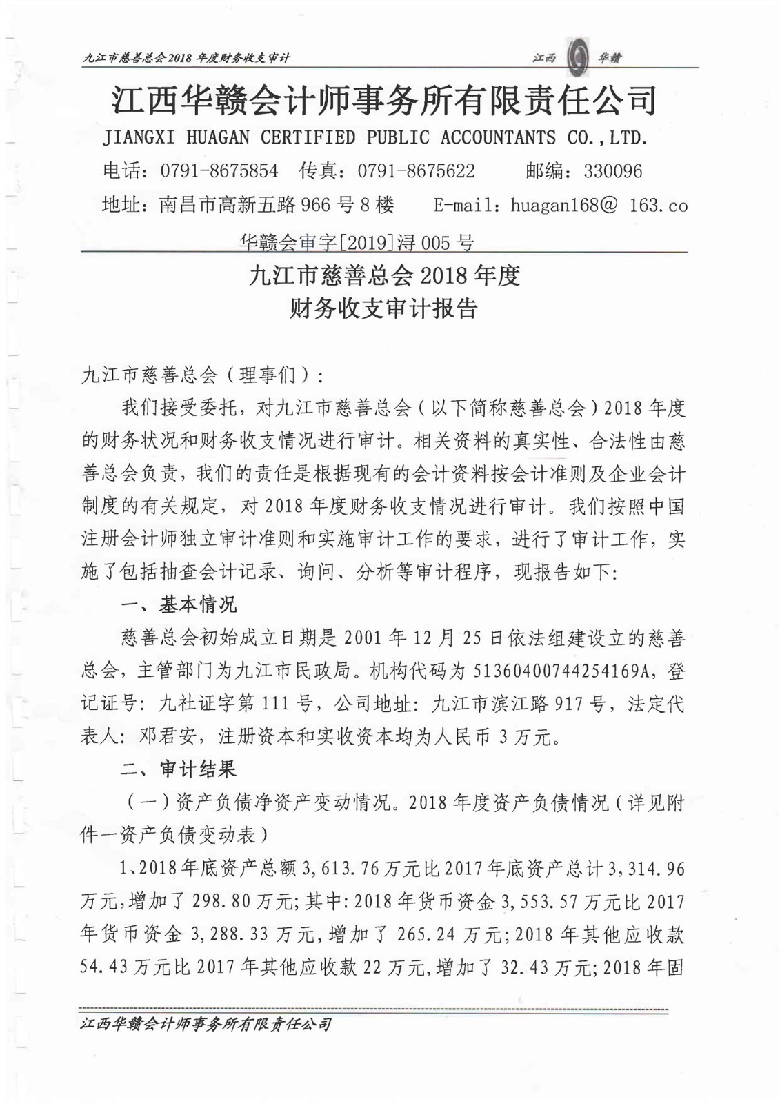 九江市慈善总会2020年度财务状况及财务收支审计报告
