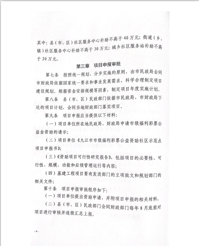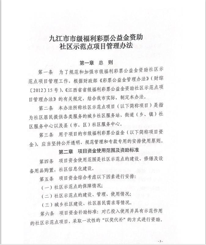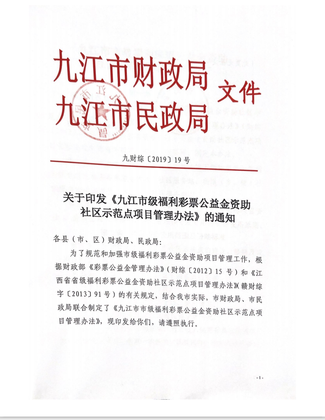 关于印发《九江市级福利彩票公益金资助社区示范点项目管理办法》的通知