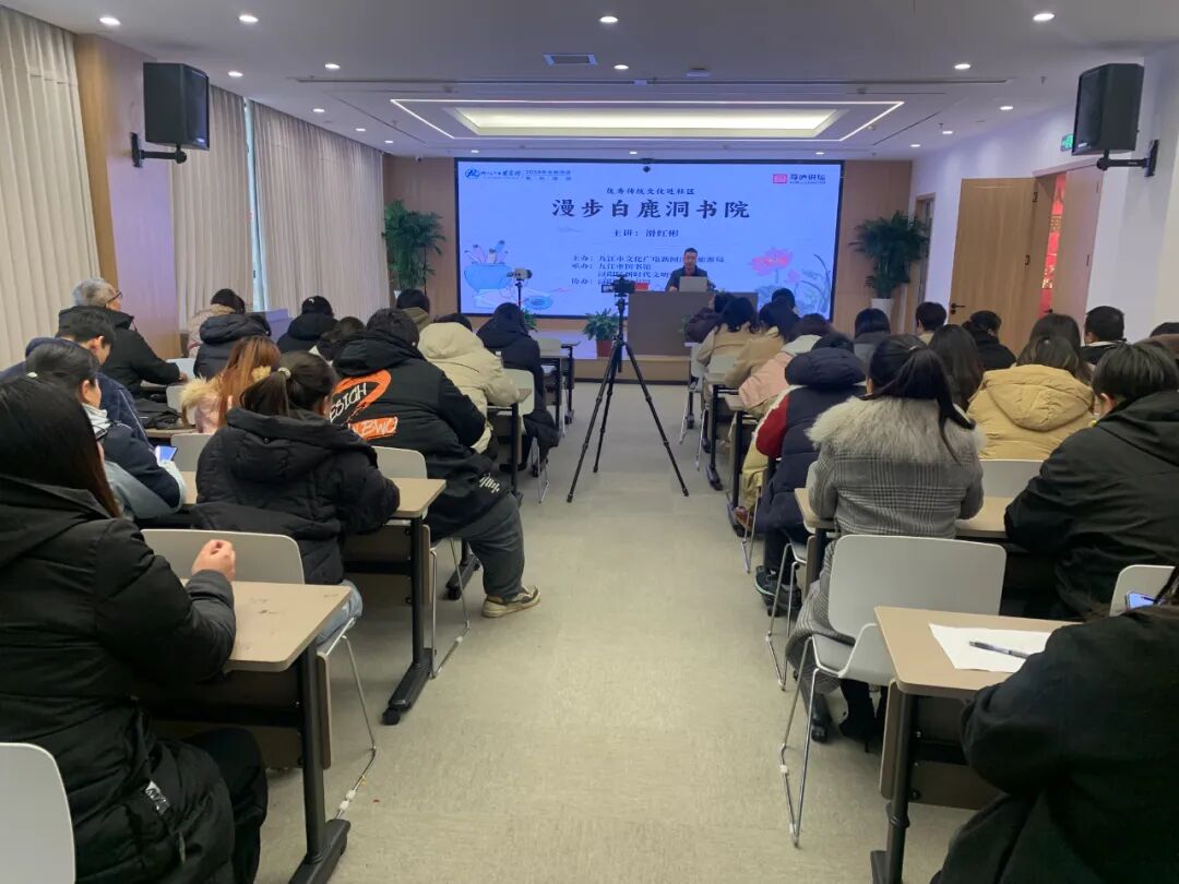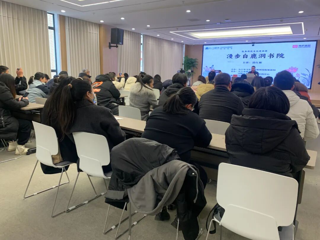 1月17日下午,由九江市文化广电新闻出版旅游局主办、九江市图书馆与浔阳区新时代文明实践中心承办、浔阳区图书馆协办的寻庐讲坛“漫步白鹿洞书院”历史人文讲座走进了社区街道,在浔阳区新时代文明实践中心开讲。本次讲座邀请了九江学院庐山文化研究中心副研究馆员滑红彬进行主讲.