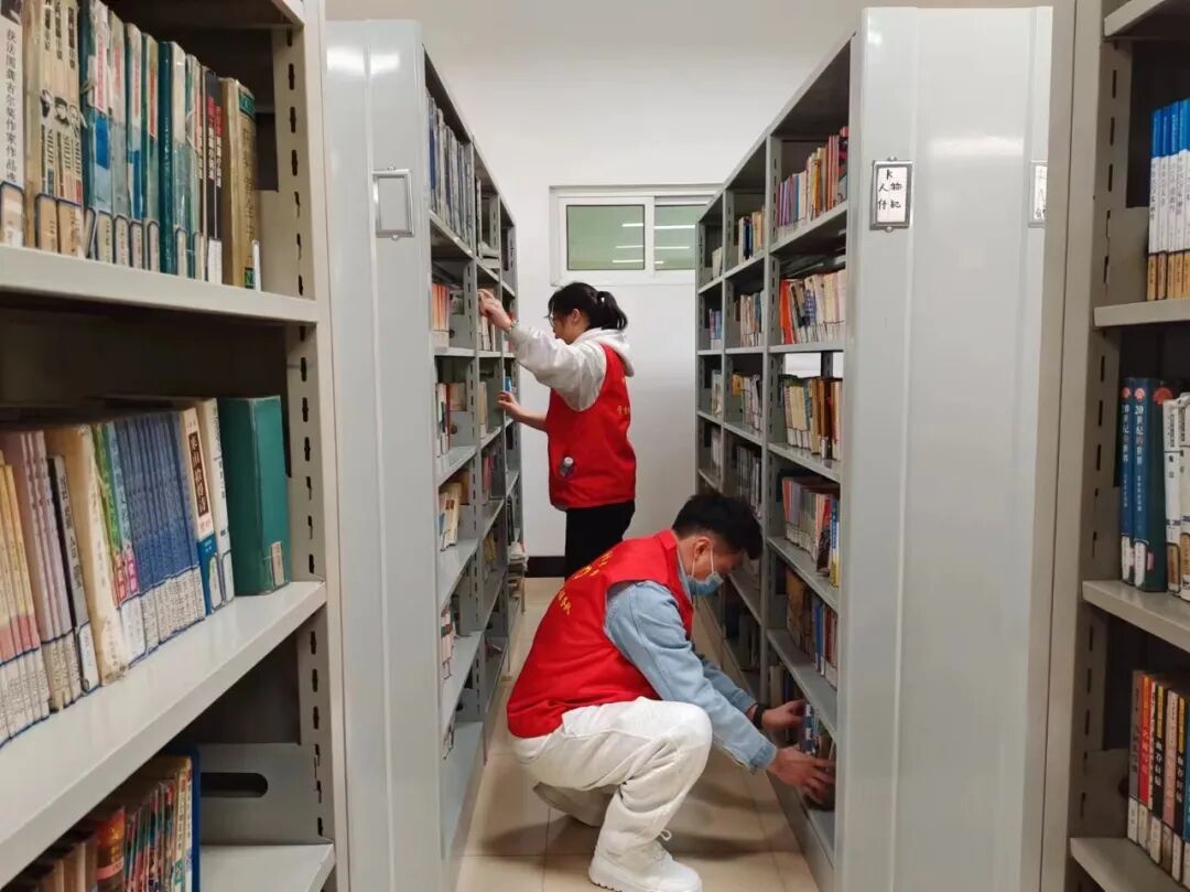活动当天,市图书馆党员志愿者在同文中学图书馆开展了图书整理、分类、上架等志愿服务。