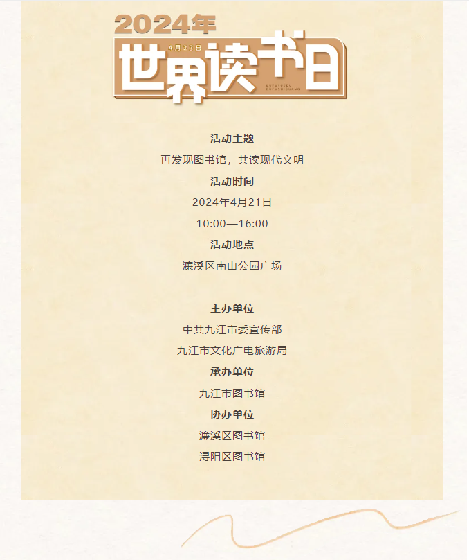 活动预告丨再发现图书馆 共读现代文明——九江市图书馆世界读书日系列活动