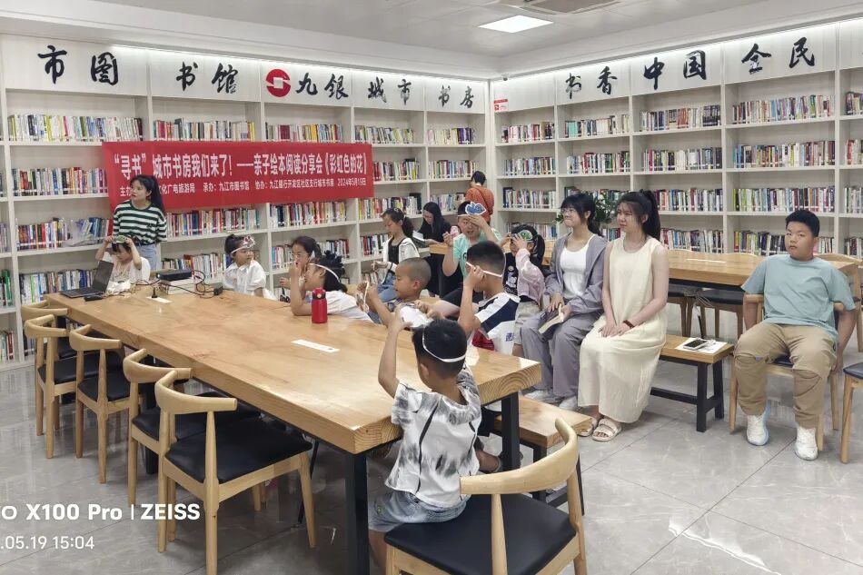 5月19日九江市图书馆与九江银行开发区社区支行城市书房精心组织了“寻书”城市书房我们来了!--亲子绘本阅读分享会活动,生动的故事《彩虹色的花》将孩子们带进了真善美的世界,孩子们在故事会中悟出了深刻的道理,这些将伴随他们在以后的学习生活中健康成长!