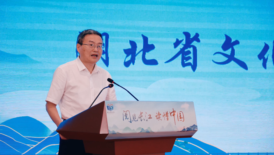 万一君在致辞中指出此次活动主题的意义所在,长江文化源远流长,造就了从巴山蜀水到江南水乡的千年文脉,是中华民族的代表性符号和中华文明的标志性象征,是涵养社会主义核心价值观的重要源泉,积淀厚重的长江文化需要我们图书馆人不断去挖掘,去讲述,去宣传,共同肩负起讲好中国故事、传播好中国声音的文化使命。