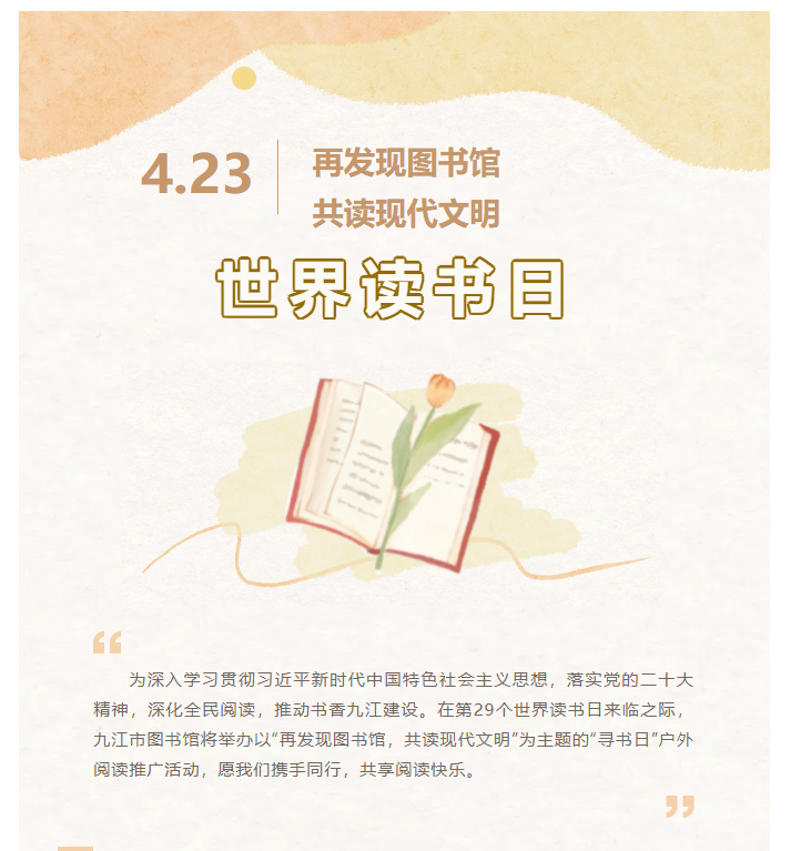 活动预告丨再发现图书馆 共读现代文明——九江市图书馆世界读书日系列活动