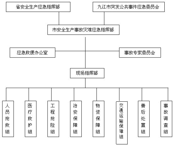 (2)统一指挥,分级负责。在九江市人民政府突发公共事件应急委员会(以下简称市应急委员会)统一领导下,市安全生产事故灾难应急指挥部负责组织协调本市较大以上突发安全生产事故灾难和超出县级人民政府应急处置能力,或者跨县级行政区、跨多个领域(行业和部门)的安全生产事故灾难应急救援工作;县级安全生产事故灾难应急机构负责组织协调本行政区域内一般突发安全生产事故灾难应急救援工作。企业要认真履行安全生产责任主体的职责,建立安全生产应急预案和应急机制。