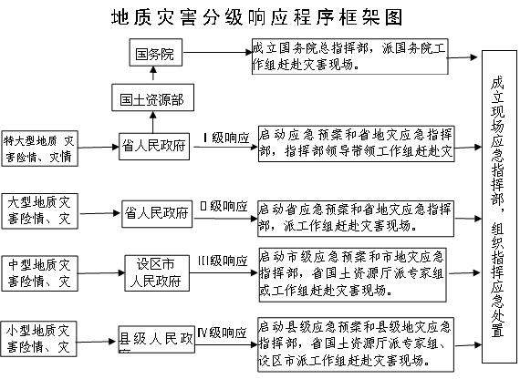 出现特大型地质灾害险情和特大型地质灾害灾情的县级人民政府立即启动相关的应急防治预案和应急指挥系统。市人民政府立即启动本应急预案和市地灾应急指挥部,并立即向国务院、国土资源部、省地灾应急指挥部和省国土资源厅报告,请求派上级工作组来指挥或指导地质灾害应急处置工作。