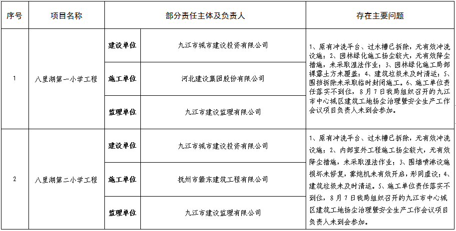 关于对八里湖第一小学工程等五个扬尘防治措施不符合要求的项目的通报