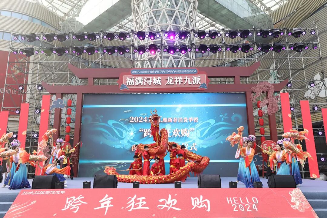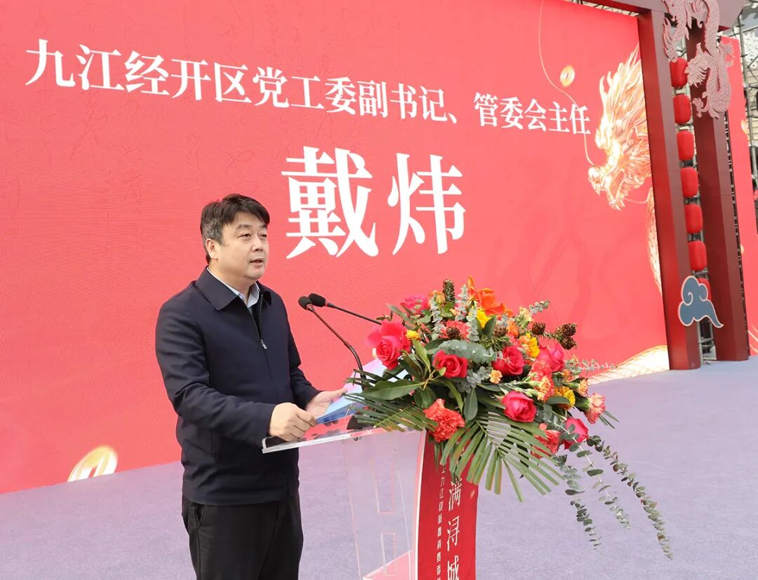 启动仪式上,戴炜代表区党工委、管委会致辞,向长期以来关心、帮助、支持我区商贸经济发展的社会各界人士表示衷心的感谢。他说,2023年以来,九江经开区紧紧围绕市委、市政府工作部署,推动商贸服务业提质增效,先后开展了春秋冬季汽车消费节等促消费活动,累计发放消费券近800万元。2024年,我区将继续优化消费载体和环境,支持联盛九龙广场打造城市中高端消费旗舰商业标杆;支持新赣北果品大市场建设运营;加速打造快乐不夜城商业街区;加快推进浔阳记忆文化旅游城建设,全力以赴为九江打造区域消费中心贡献力量。