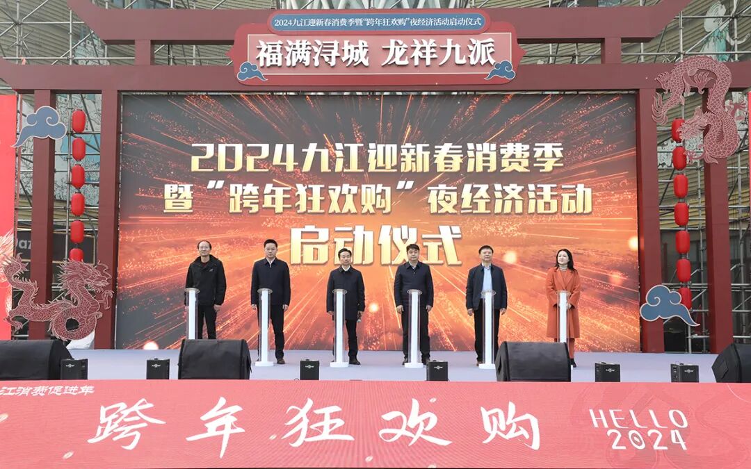 12月30日下午,由市政府主办,市商务局、九江经开区管委会承办的2024九江迎新春消费季暨“跨年狂欢购”夜经济活动启动仪式在联盛快乐城广场举行。副市长熊晋喜出席并宣布开幕。区党工委副书记、管委会主任戴炜,市政府副秘书长徐松茂,市商务局党委书记、局长李善云,区党工委委员、管委会副主任杨龙兴出席并共同启动。